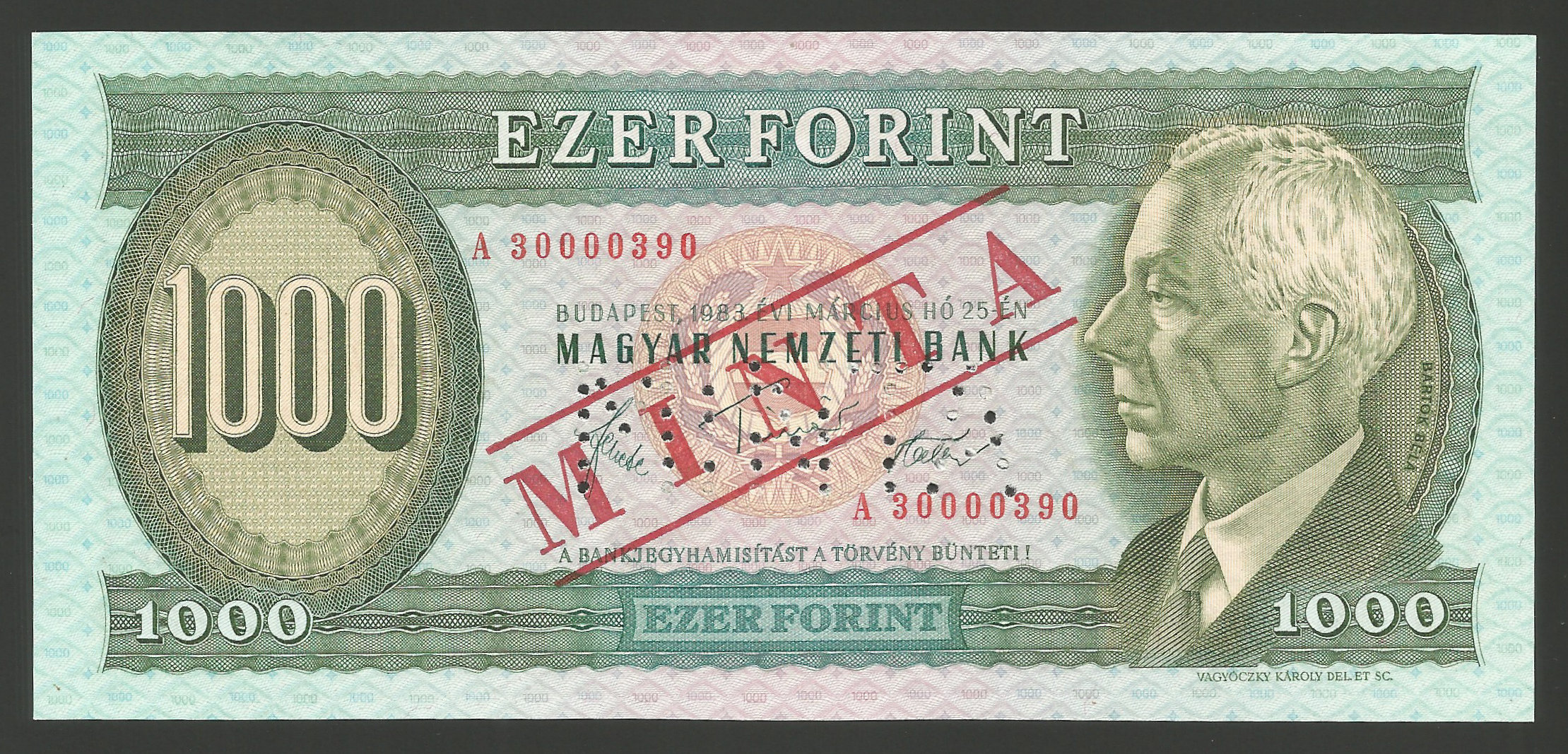 MINTA 1000 forint 1983 A – Kiváló tartású minta bankjegy, hajtatlan állapotban. (ml