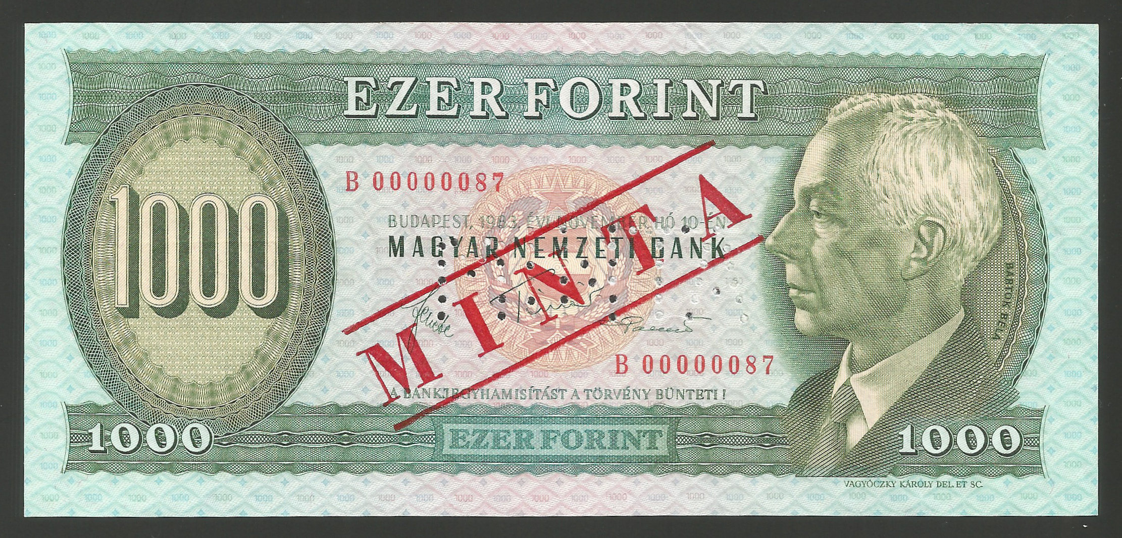 MINTA 1000 forint 1983 B – Kiváló tartású minta bankjegy, hajtatlan állapotban. (ml