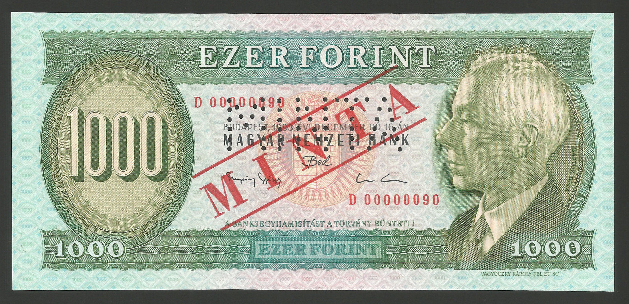 MINTA 1000 forint 1993 D – Kiváló tartású minta bankjegy, hajtatlan állapotban. (ml