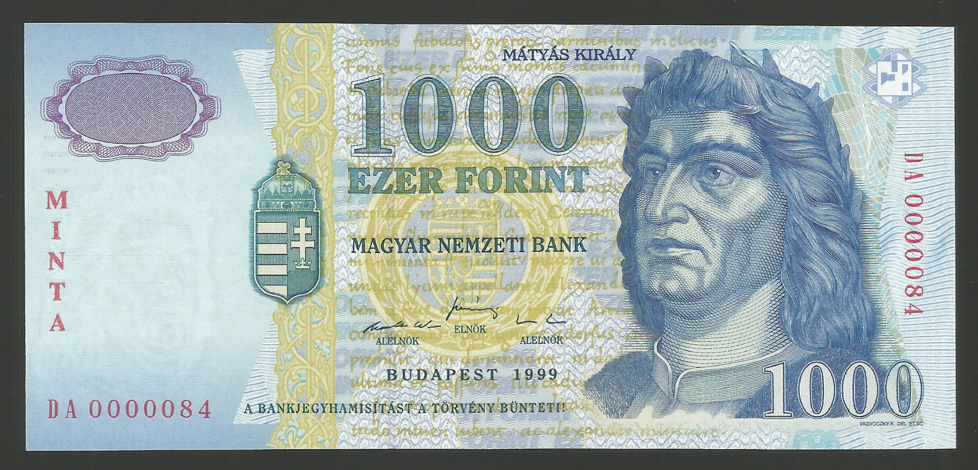 Főoldal Papírpénzek MINTA bankjegyek MINTA 1000 forint 1999