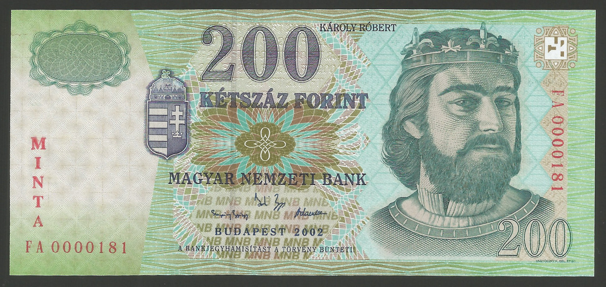 MINTA 200 forint 2002 hajtatlan állapotban. (sf