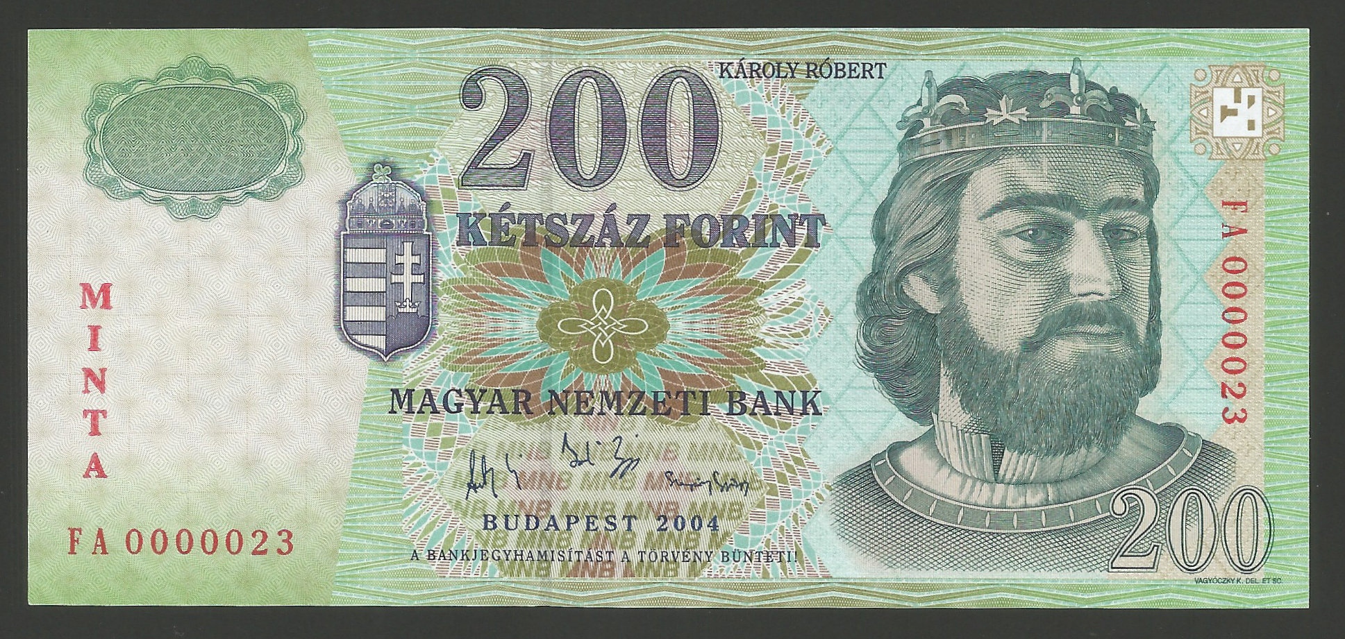 MINTA 200 forint 2004 – Kiváló tartású minta bankjegy, hajtatlan állapotban. (ml