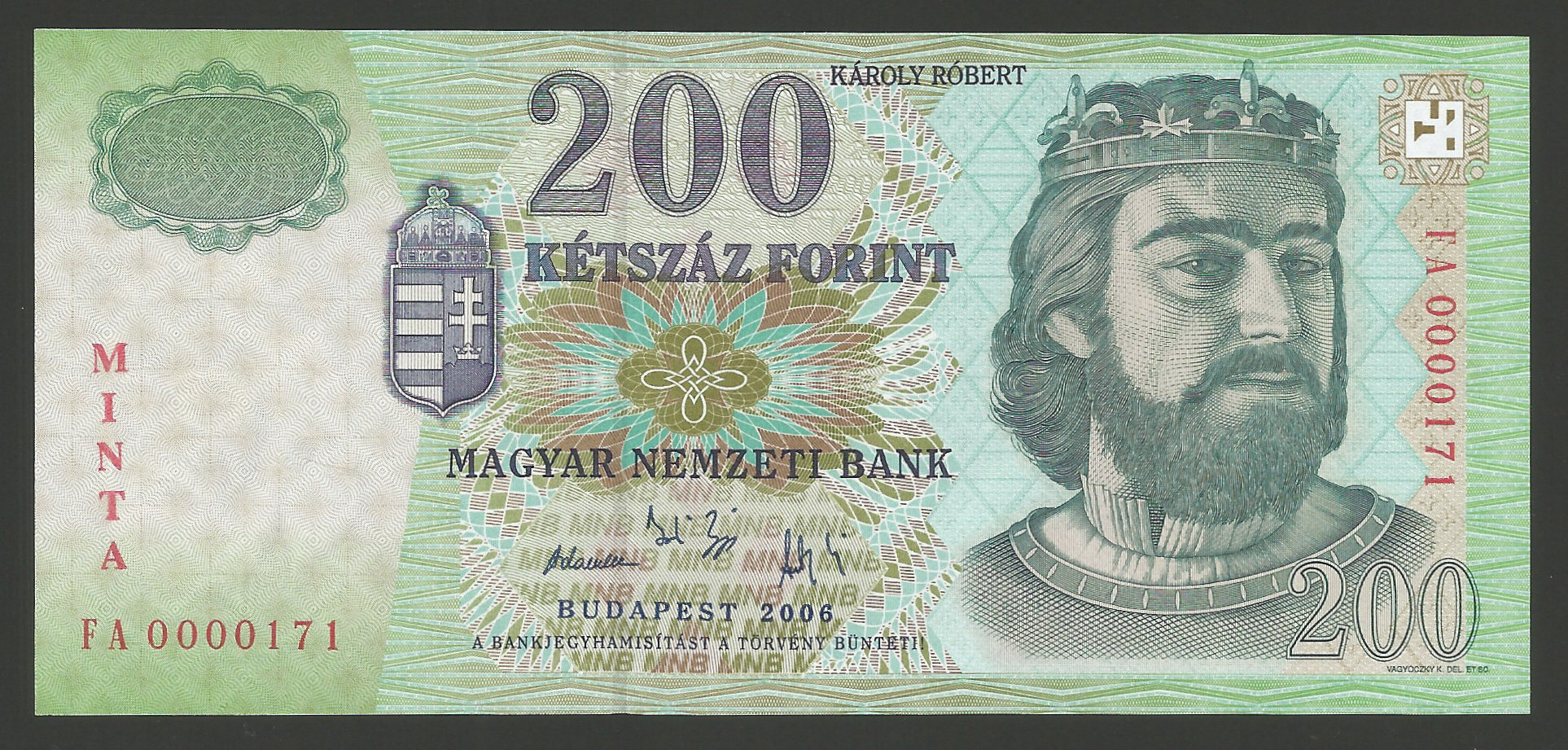 Főoldal Papírpénzek MINTA bankjegyek MINTA 200 forint 2006