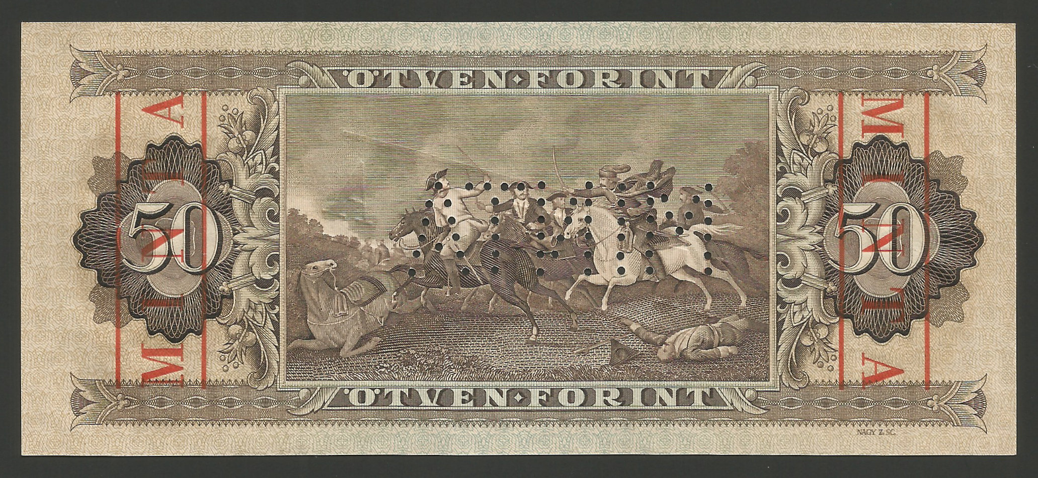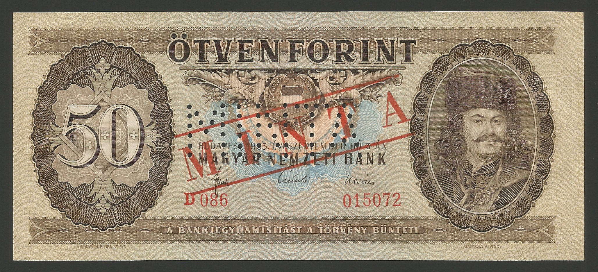 MINTA 50 forint 1965 – kiváló állapotú ritka minta bankjegy, hajtatlan állapotban.(ml