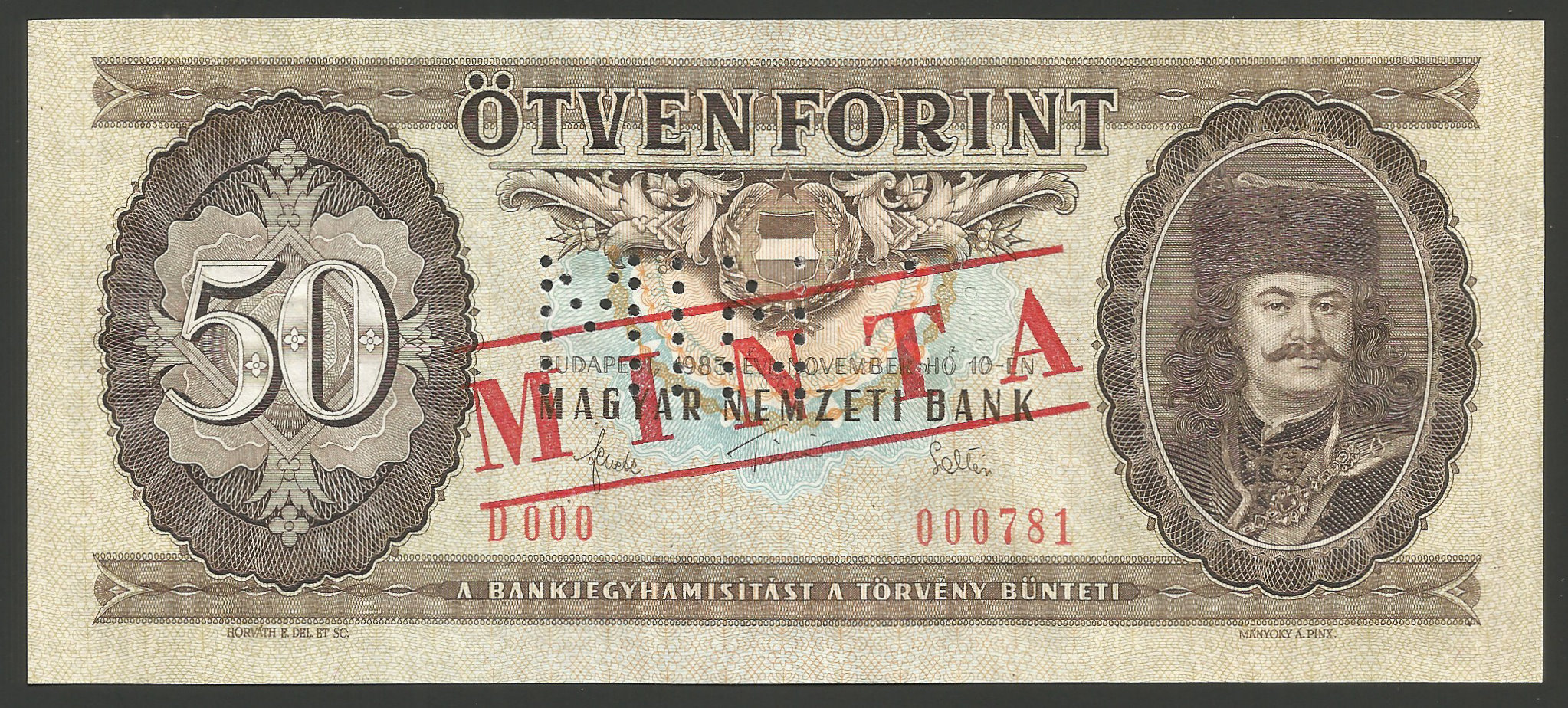 MINTA 50 Forint 1983 perforáció + bélyegzés, kiváló hajtatlan állapotban. (sf