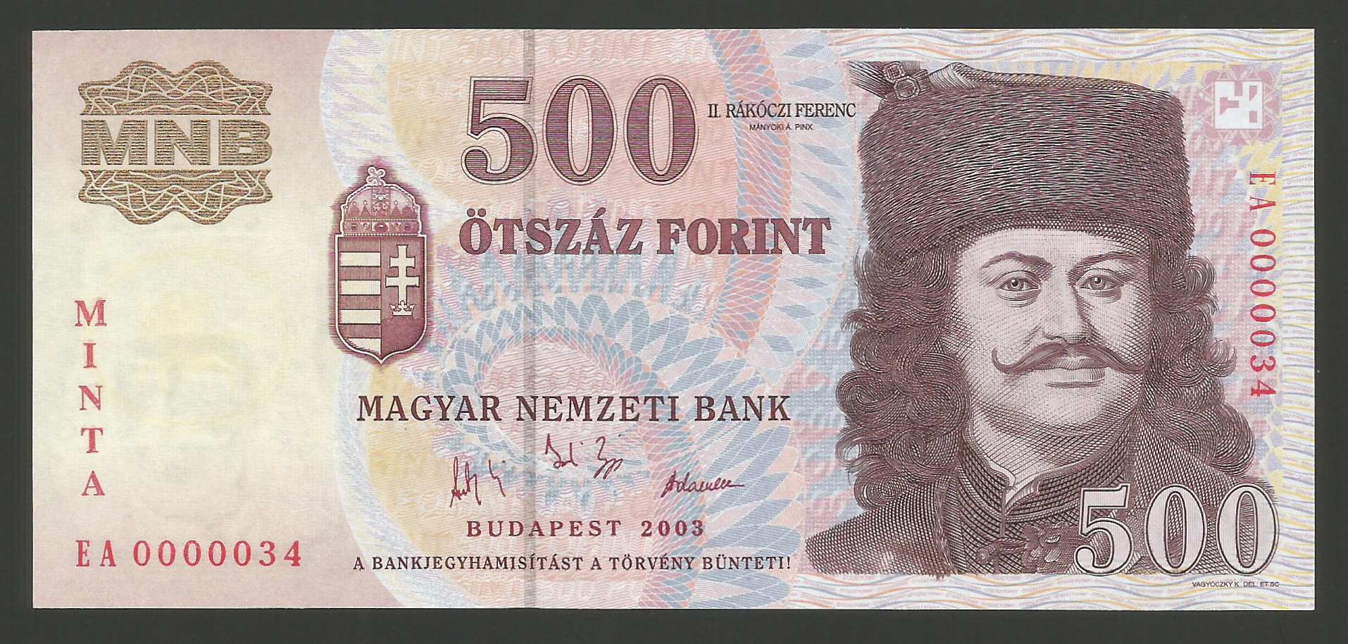 MINTA 500 forint 2003 – Kiváló tartású minta bankjegy, hajtatlan állapotban. (ml
