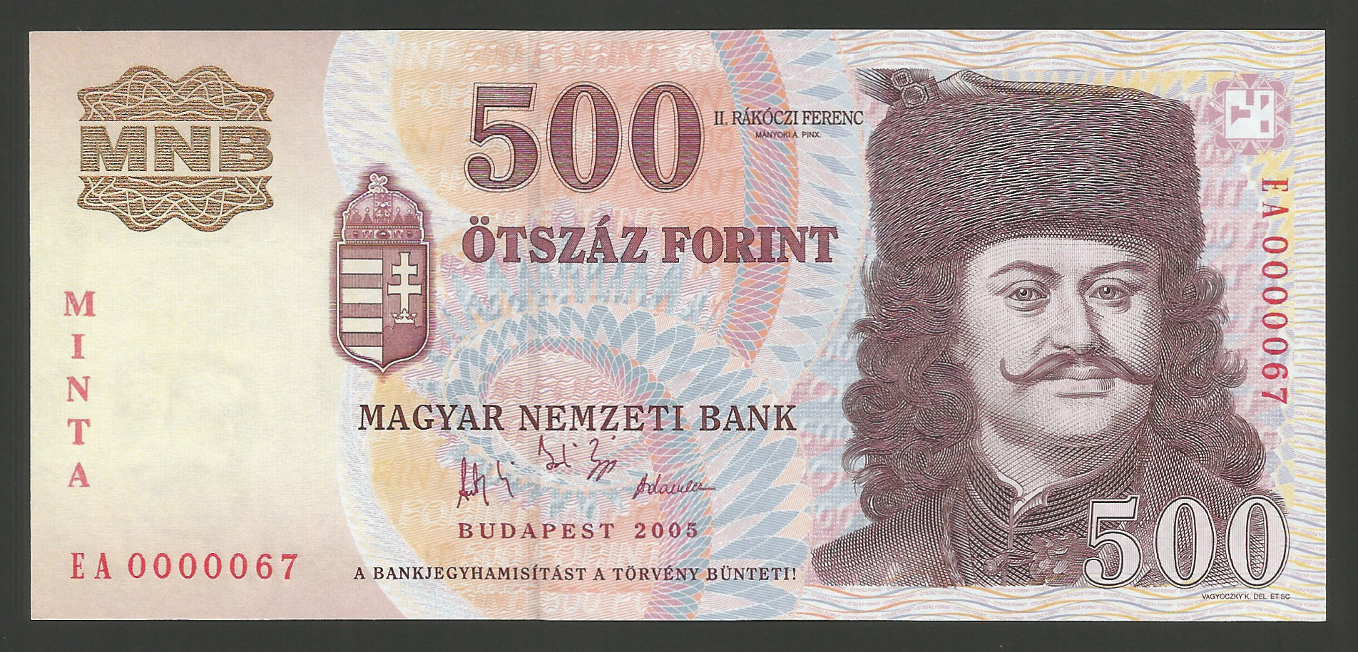 MINTA 500 forint 2005 – Kiváló tartású minta bankjegy, hajtatlan állapotban. (ml