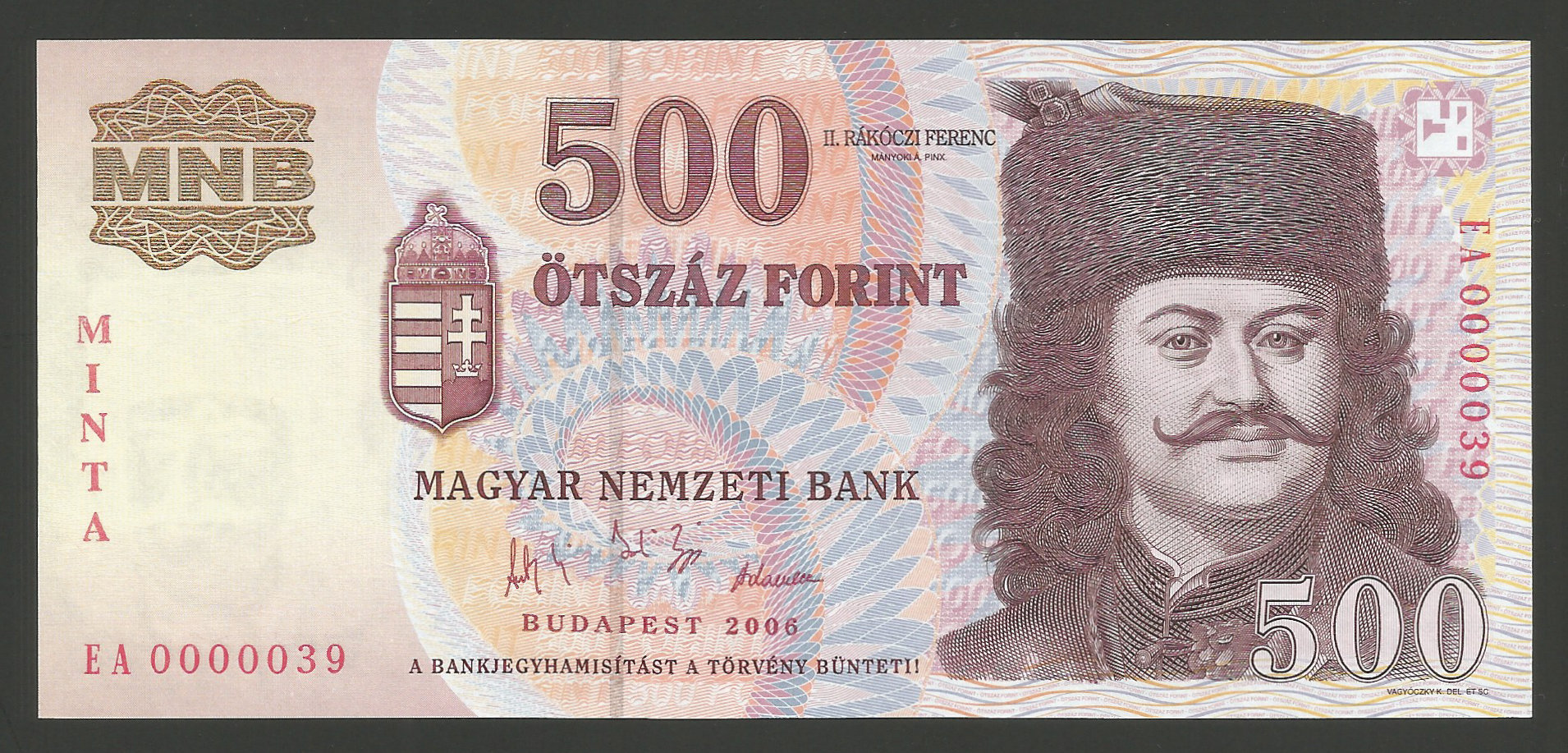 Főoldal Papírpénzek MINTA bankjegyek MINTA 500 forint 2006