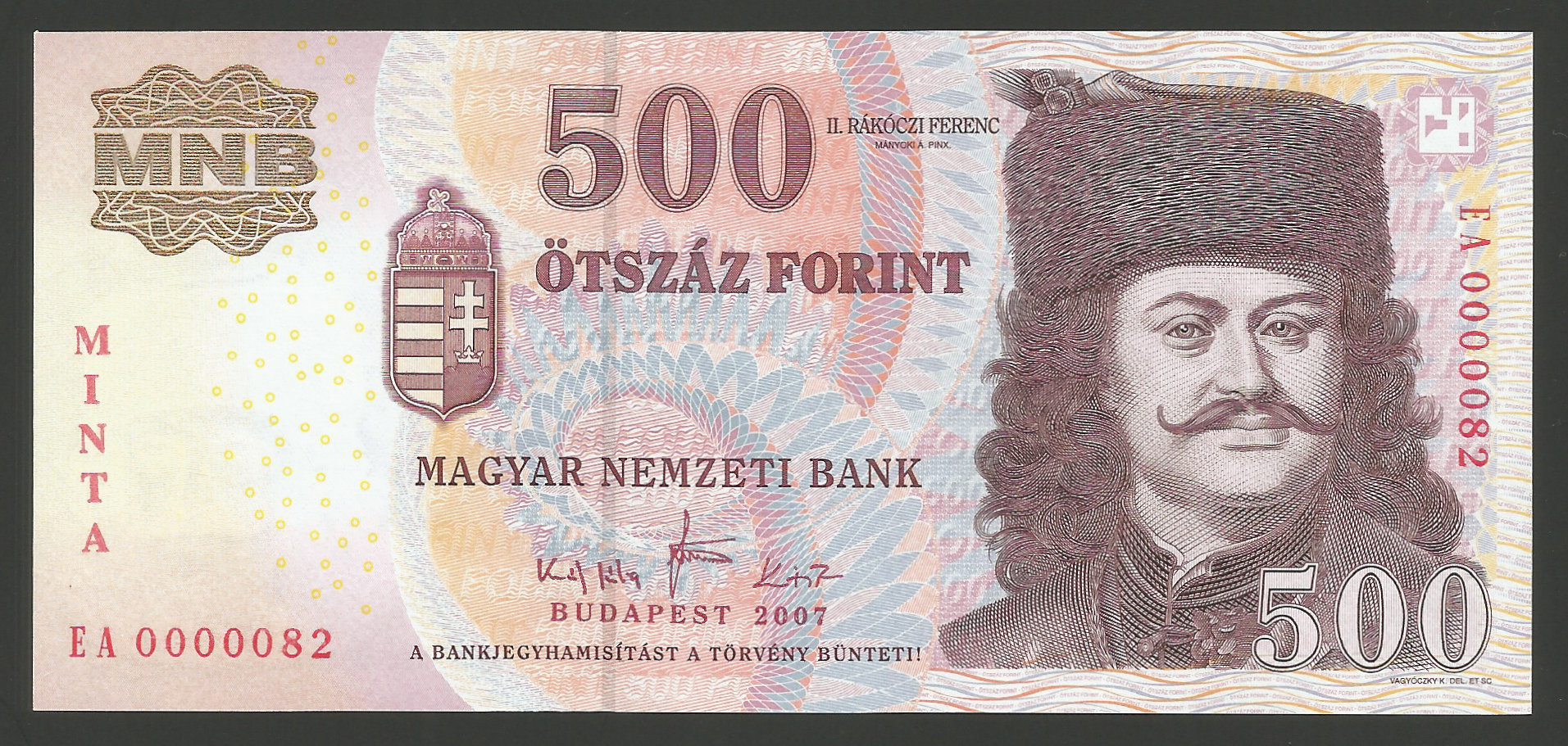 MINTA 500 forint 2007 – Kiváló tartású ritka minta bankjegy, hajtatlan állapotban. (ml
