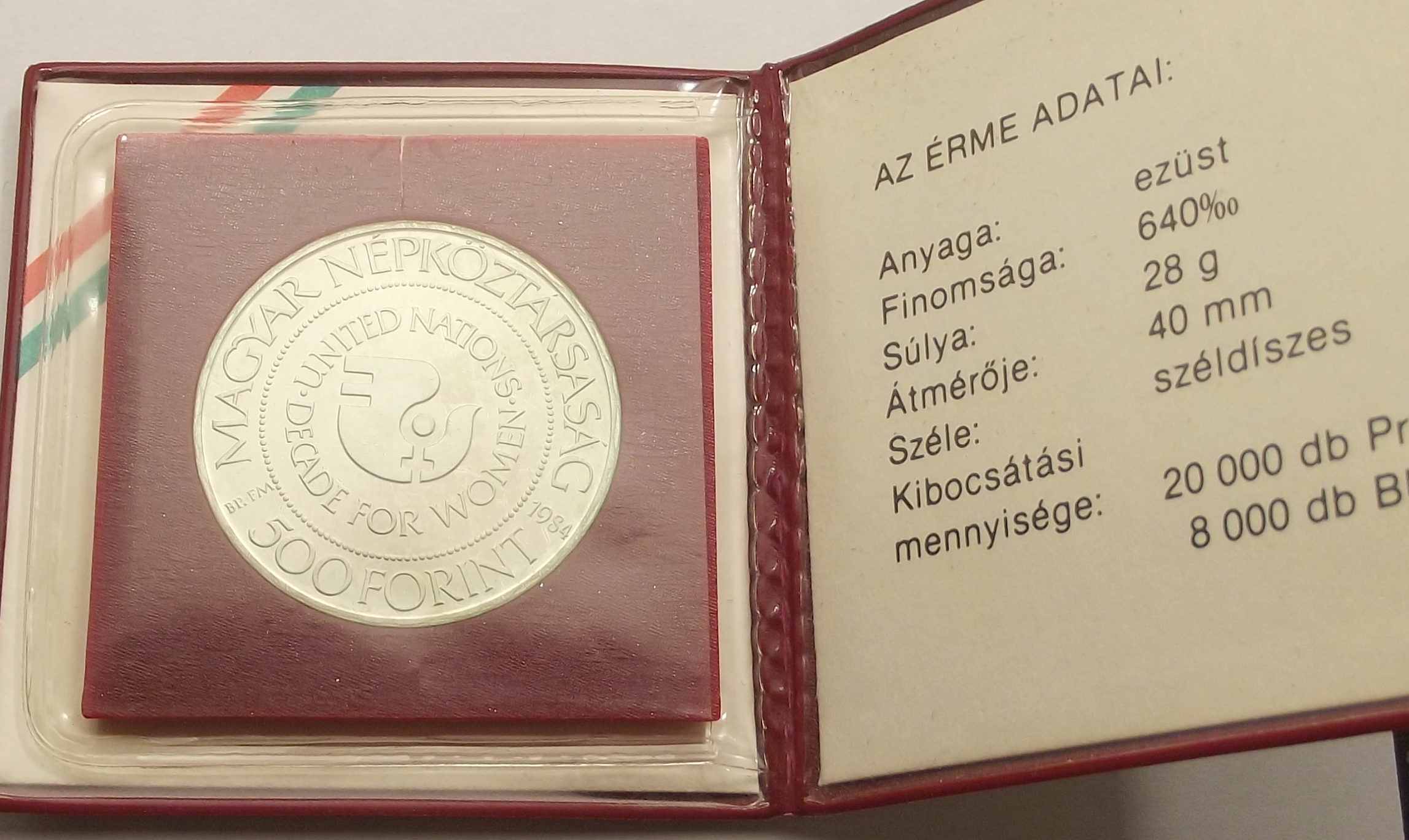 Nők évtizede 500 Forint 1984 BU MNB tokban, kiváló állapotban (gyr