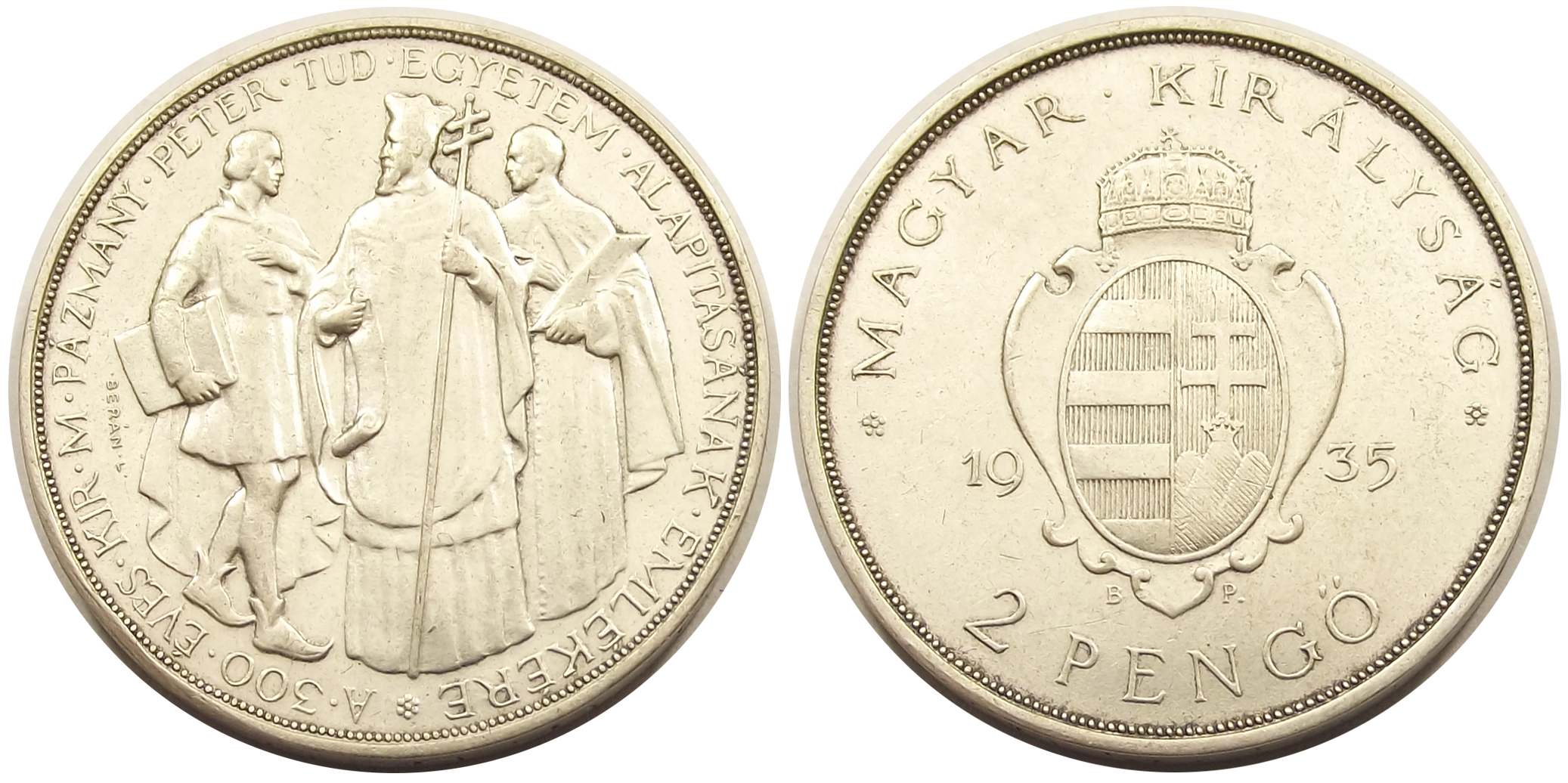 Főoldal Fémpénzek Magyar pénzek Magyar Királyság 1920-1944 Pázmány 2 pengő 1935 Magyar Királyság