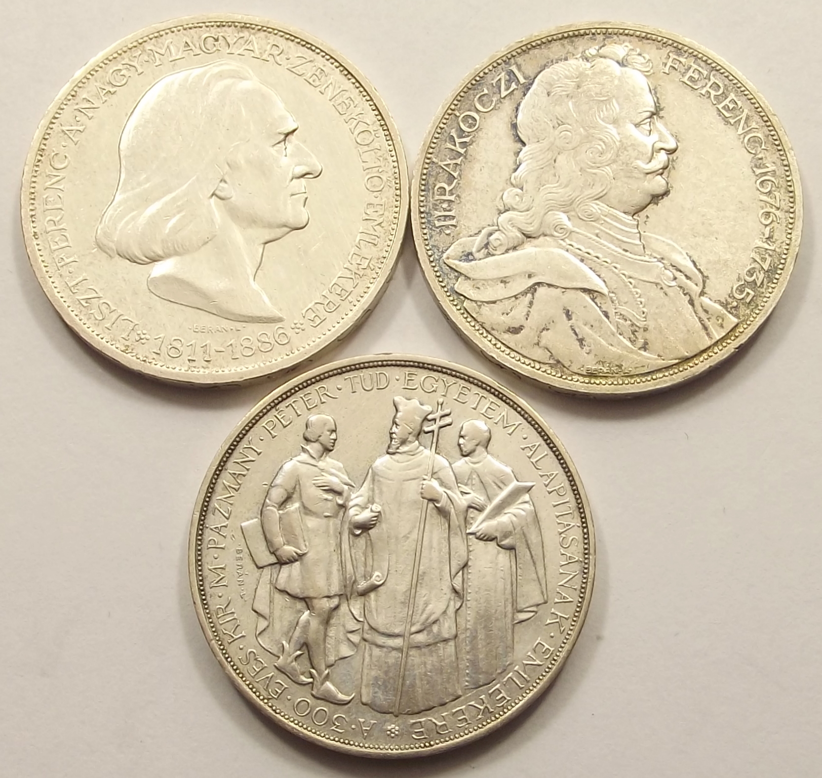 Pázmány ezüst 2 pengő sor, kiváló állapotban