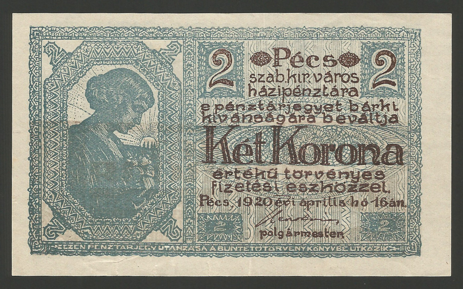 Főoldal Papírpénzek Szükségpénzek Pécs 2 korona 1920