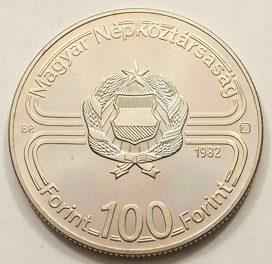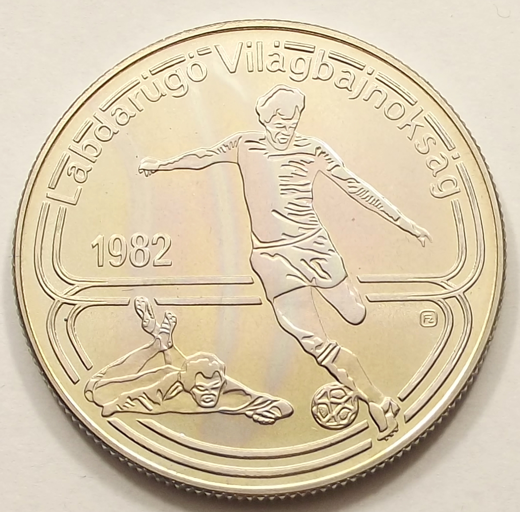 Spanyol Foci VB 100 forint 1982 BU, kiváló állapotban, enyhe foltok az érmén (ti