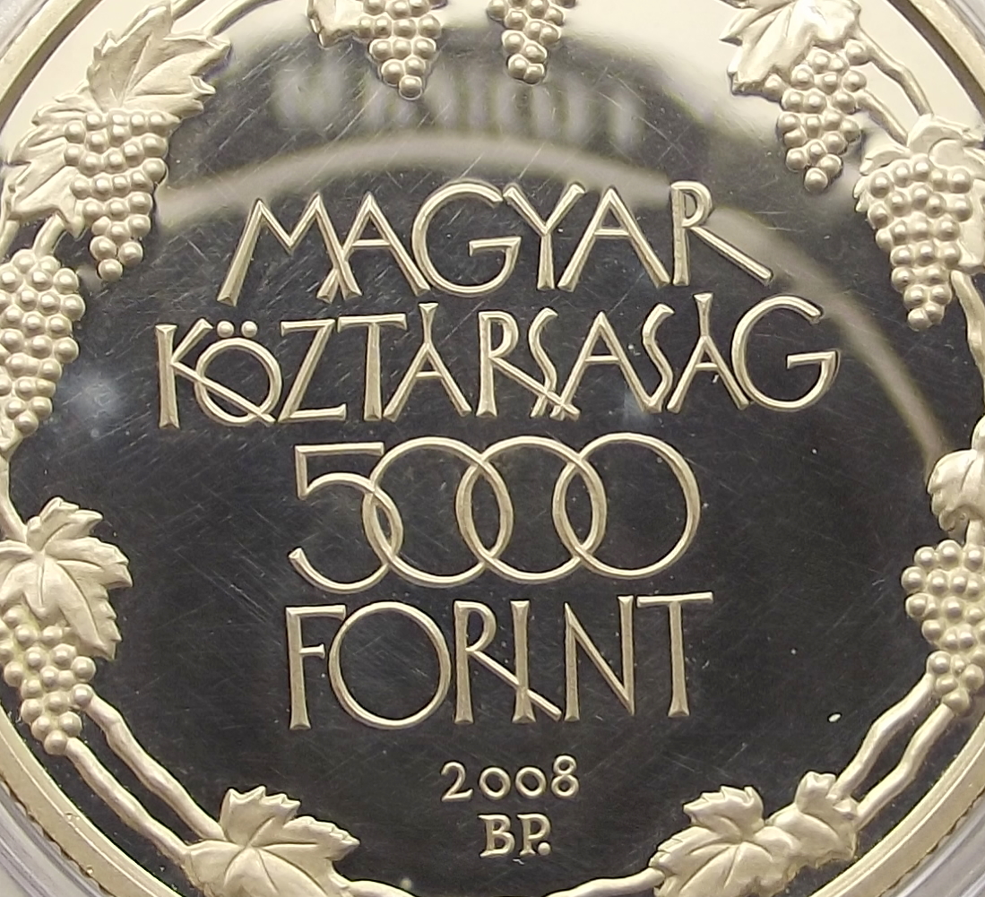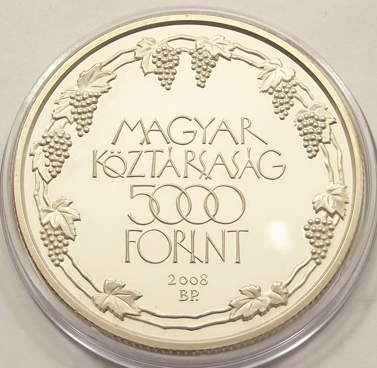 Tokaji borvidék 5000 forint 2008 PP, szép állapotban, kapszulában. Az érme mindkét oldala mikrokarcos (kv