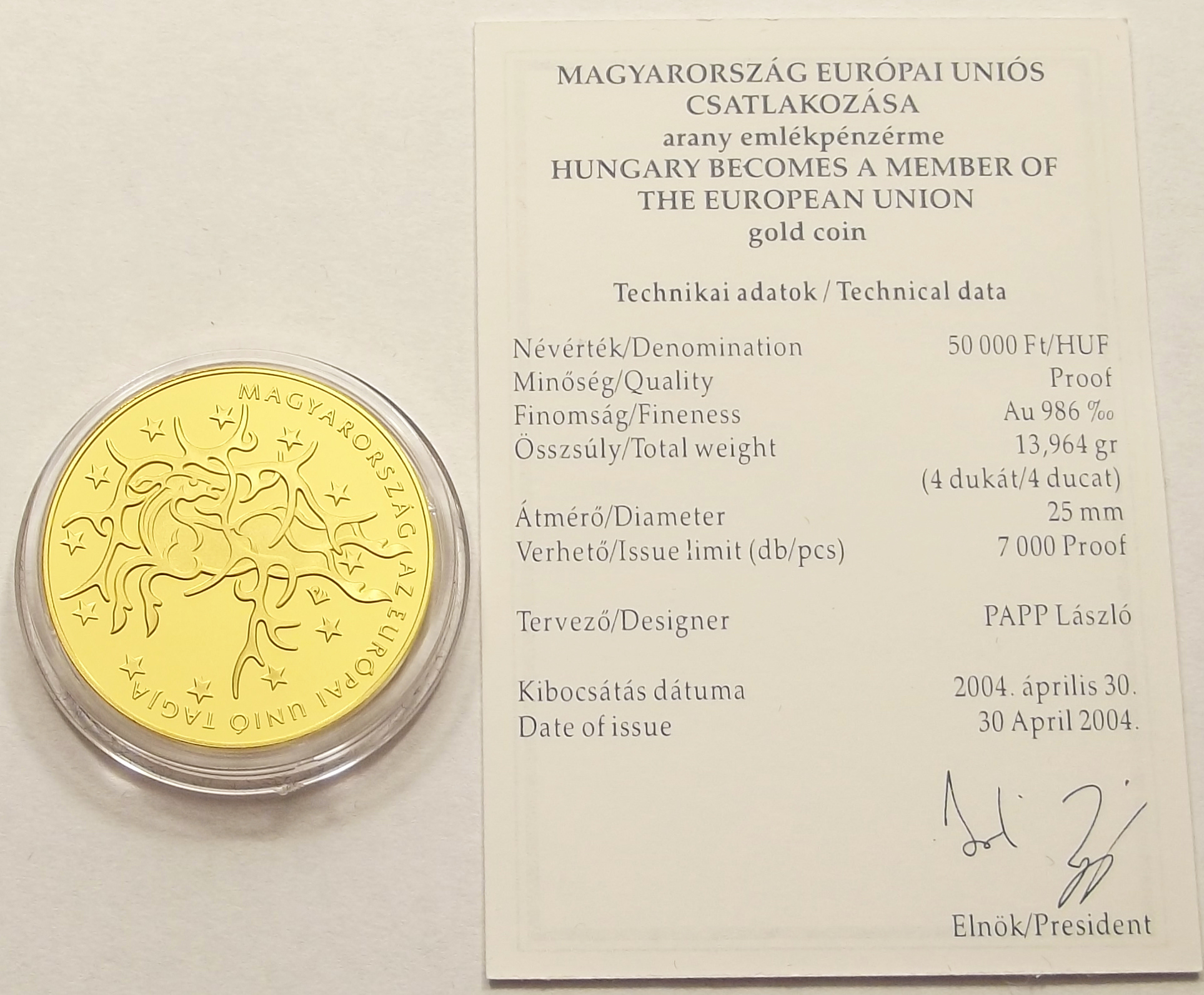 Uniós csatlakozás 50.000 Ft pp 2004, kiváló állapotban, certificate-el. (sl