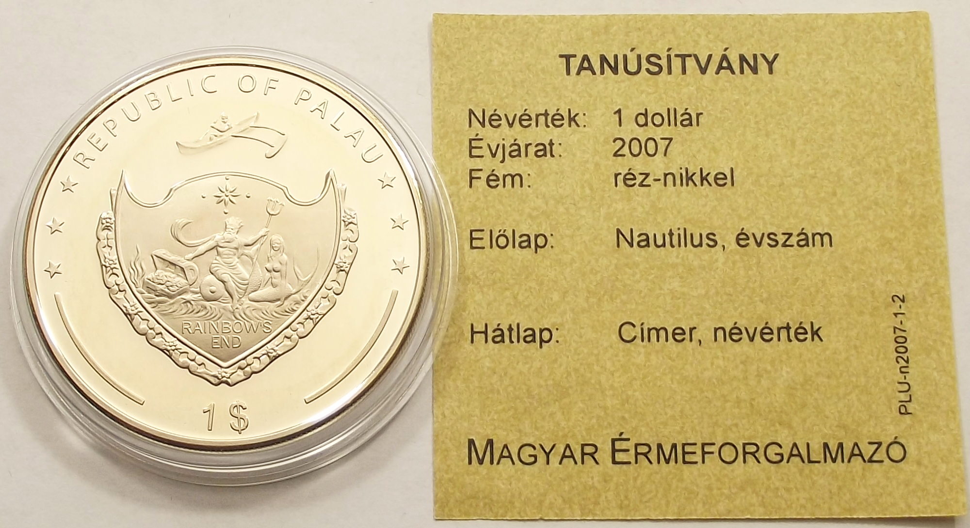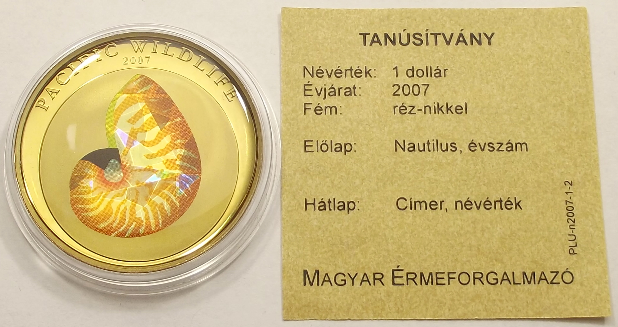 Vanuatu 1 dollár 2007 – nautilus érme kiváló állapotban. (bud.ör