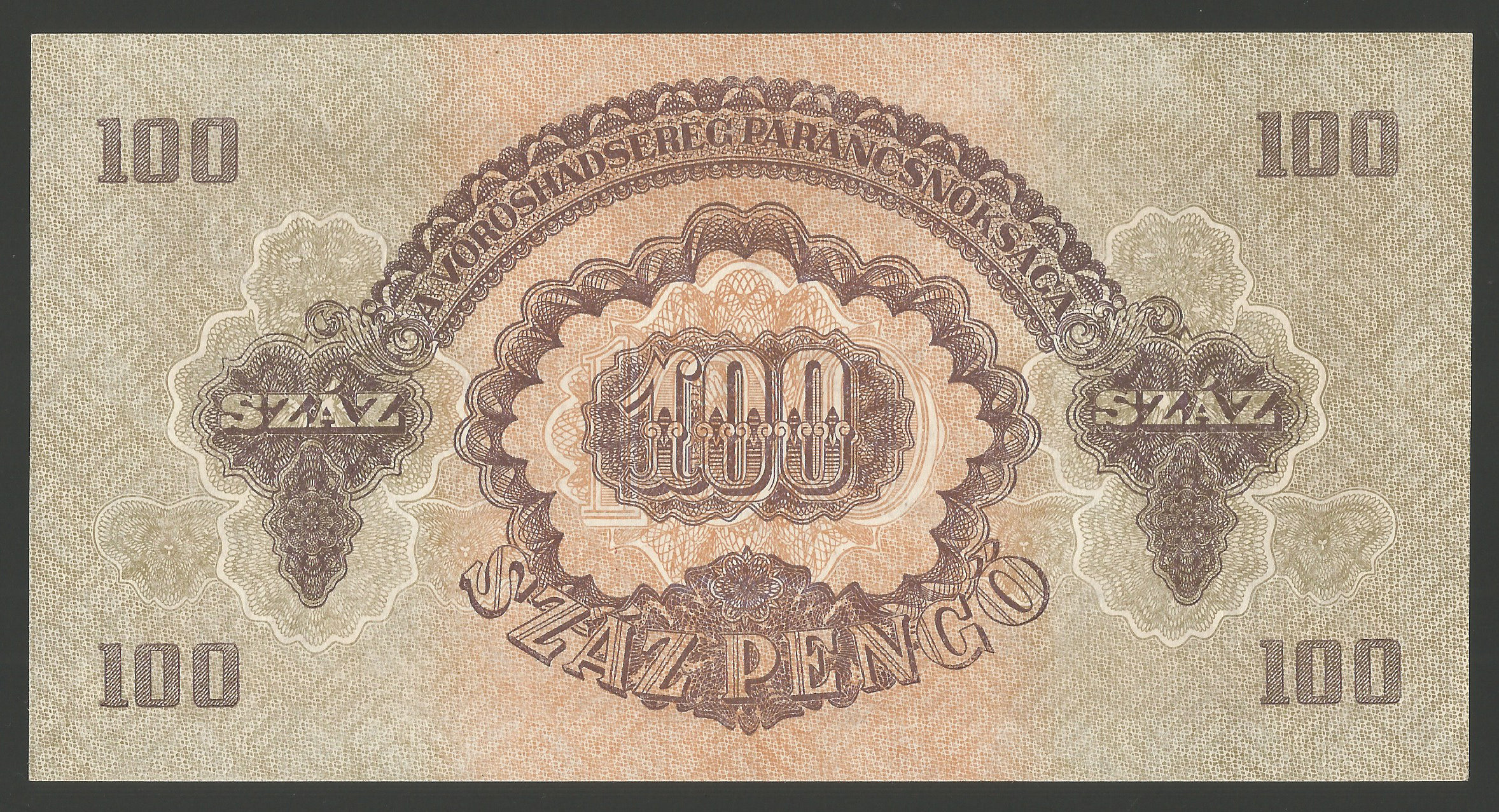 Vöröshadsereg 100 pengő 1944 hajtatlan állapotban, minimális sarokhajlás (gr